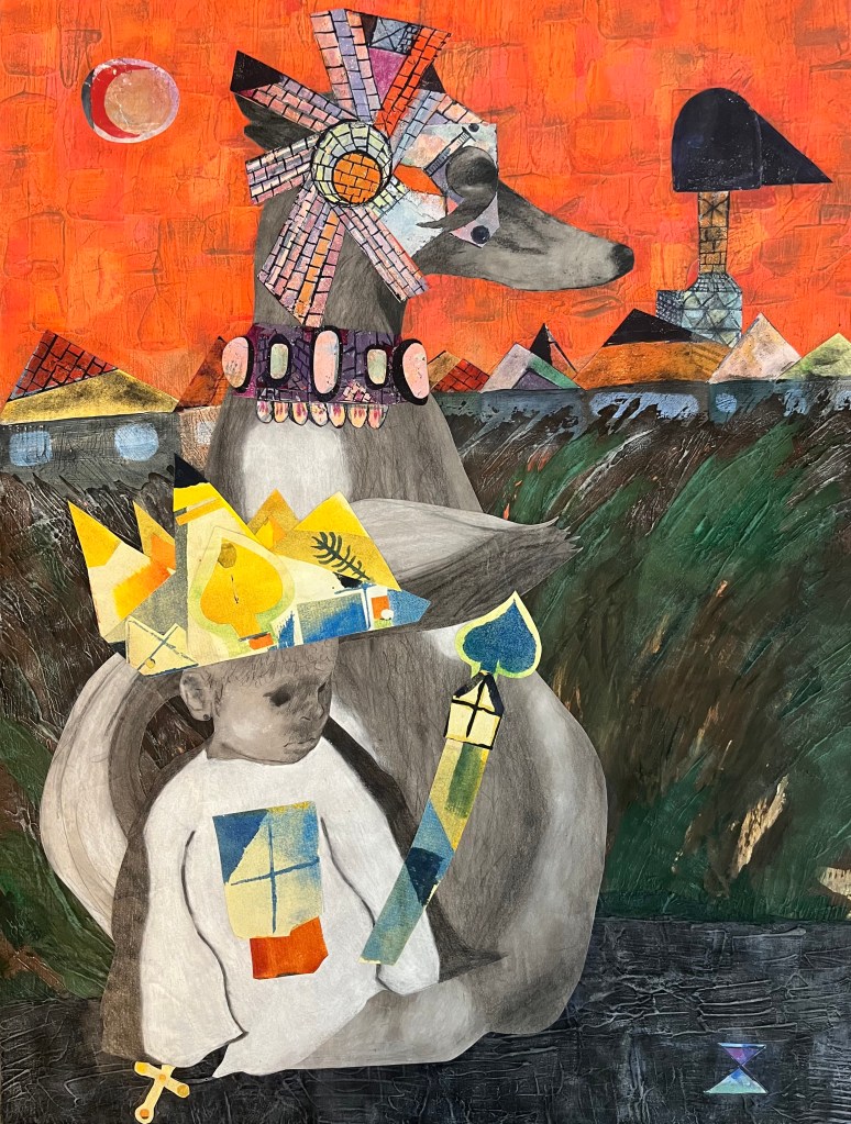 Boy & Sighthound – 18×24 – Acrylic, Pencil Drawings, & Mixed Media